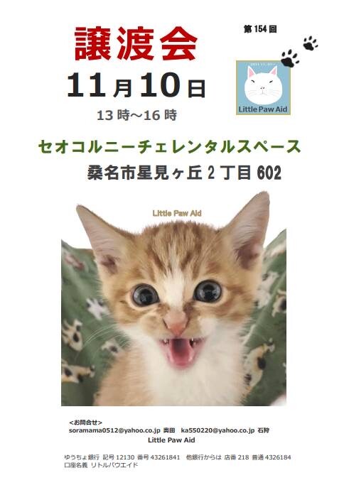 三重県桑名市11月10日(日)リトルパウエイド譲渡会