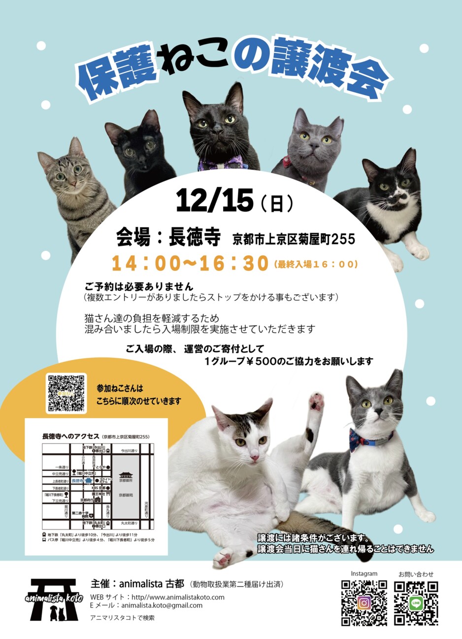 猫の譲渡会を開催しております今回は1〜2才の若い大人猫さんを中心に子猫も少しだけ参加します会場内が密になる事を避け猫さん達の負担を軽減するため人が多い時は...