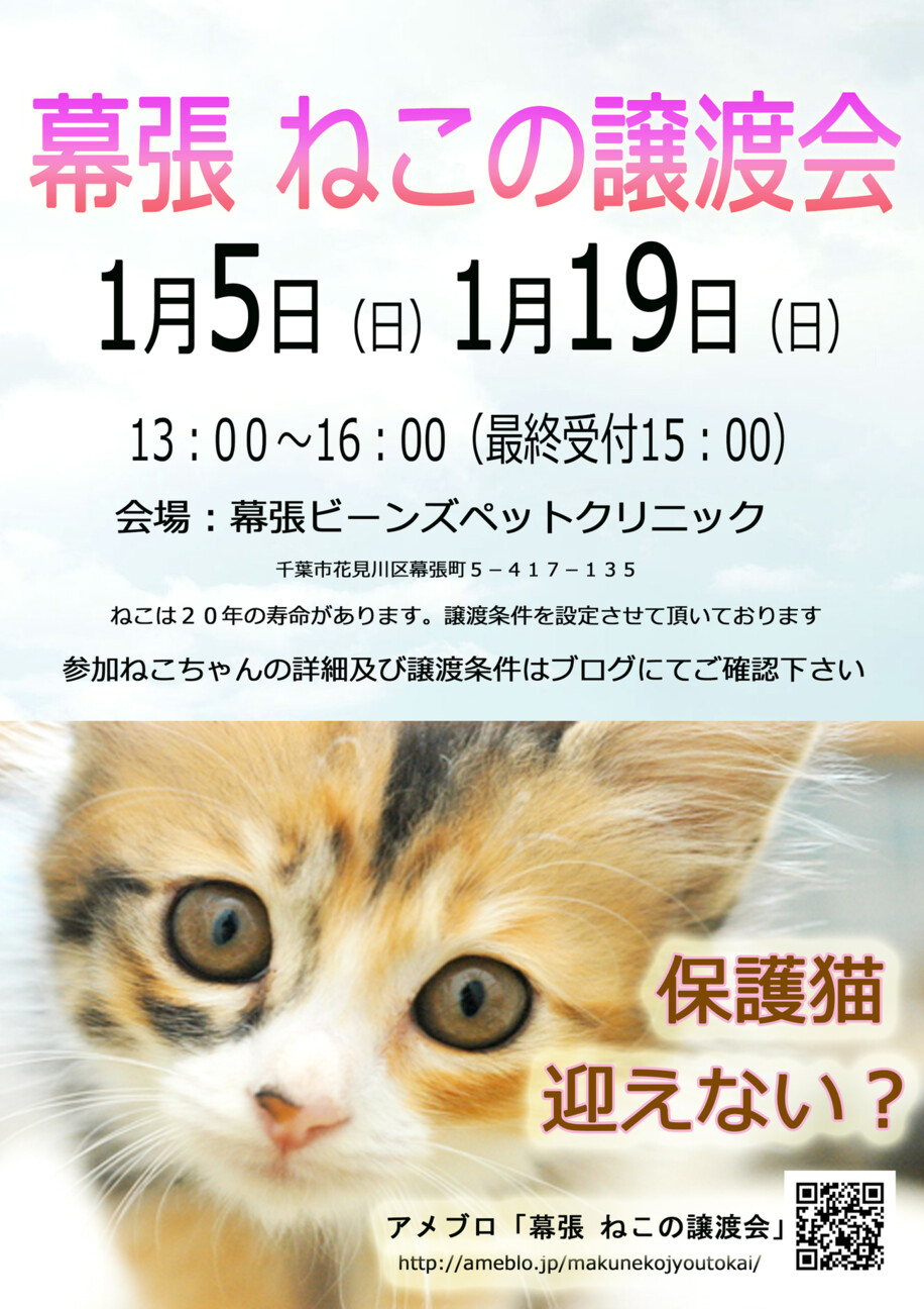 千葉市「 幕張 ねこの譲渡会」動物病院で開催です
