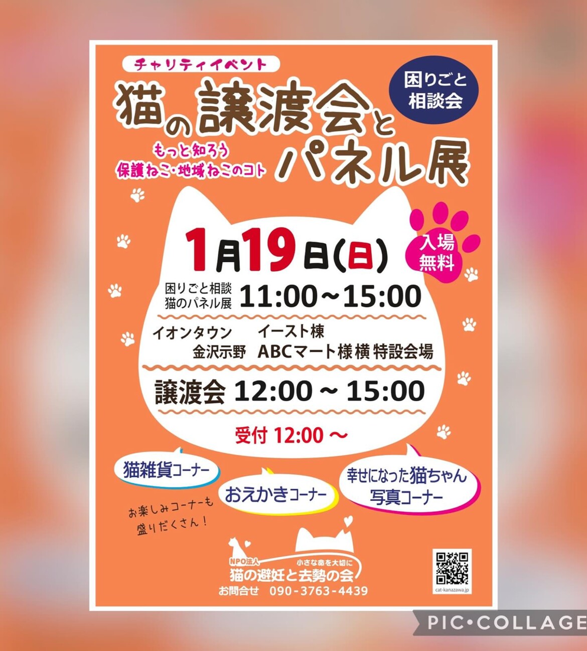 【猫の避妊と去勢の会】猫の譲渡会とパネル展、困りごと相談会
