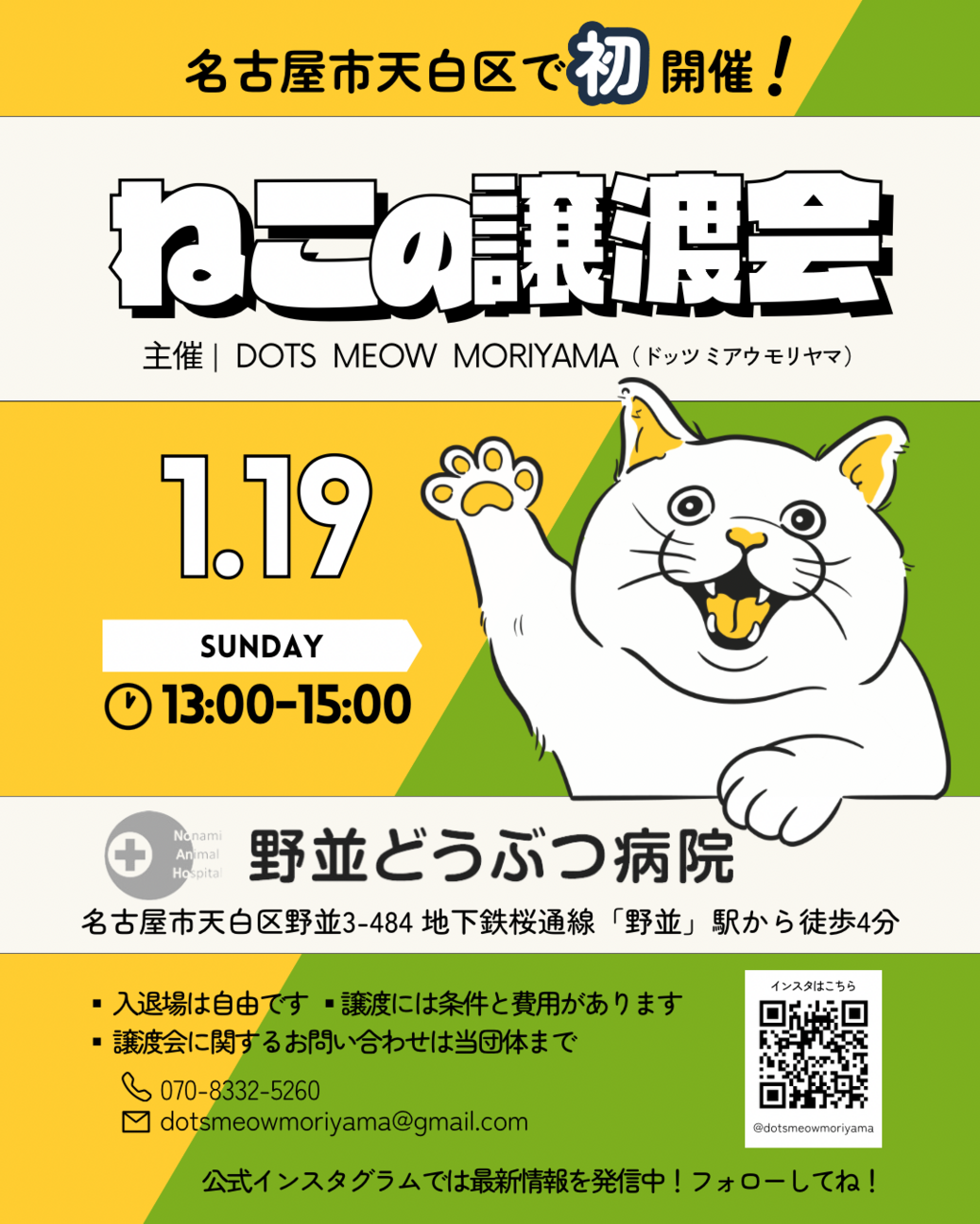 1/19(日)保護猫譲渡会@名古屋市天白区