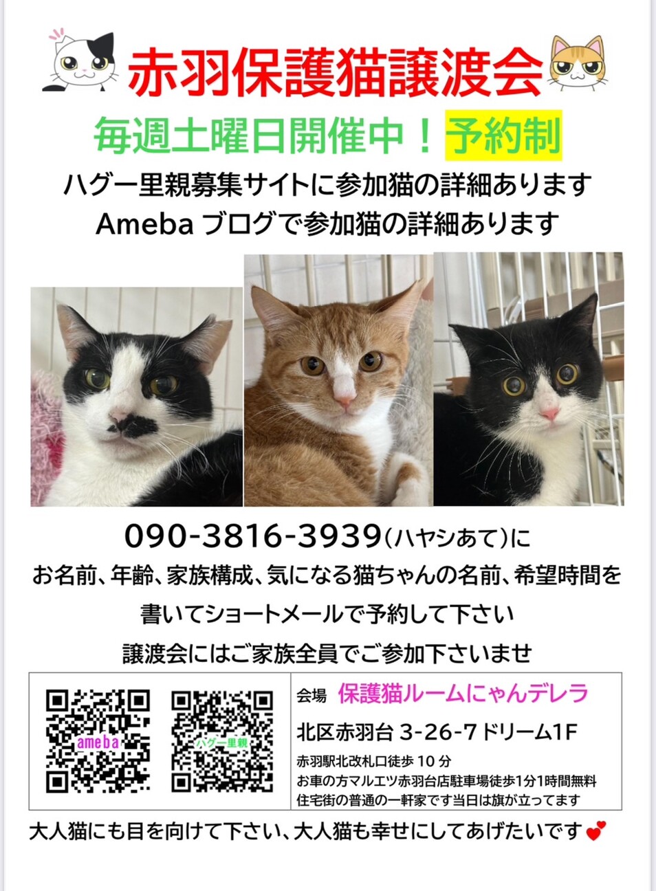 赤羽保護猫譲渡会(JR赤羽駅徒歩10分)