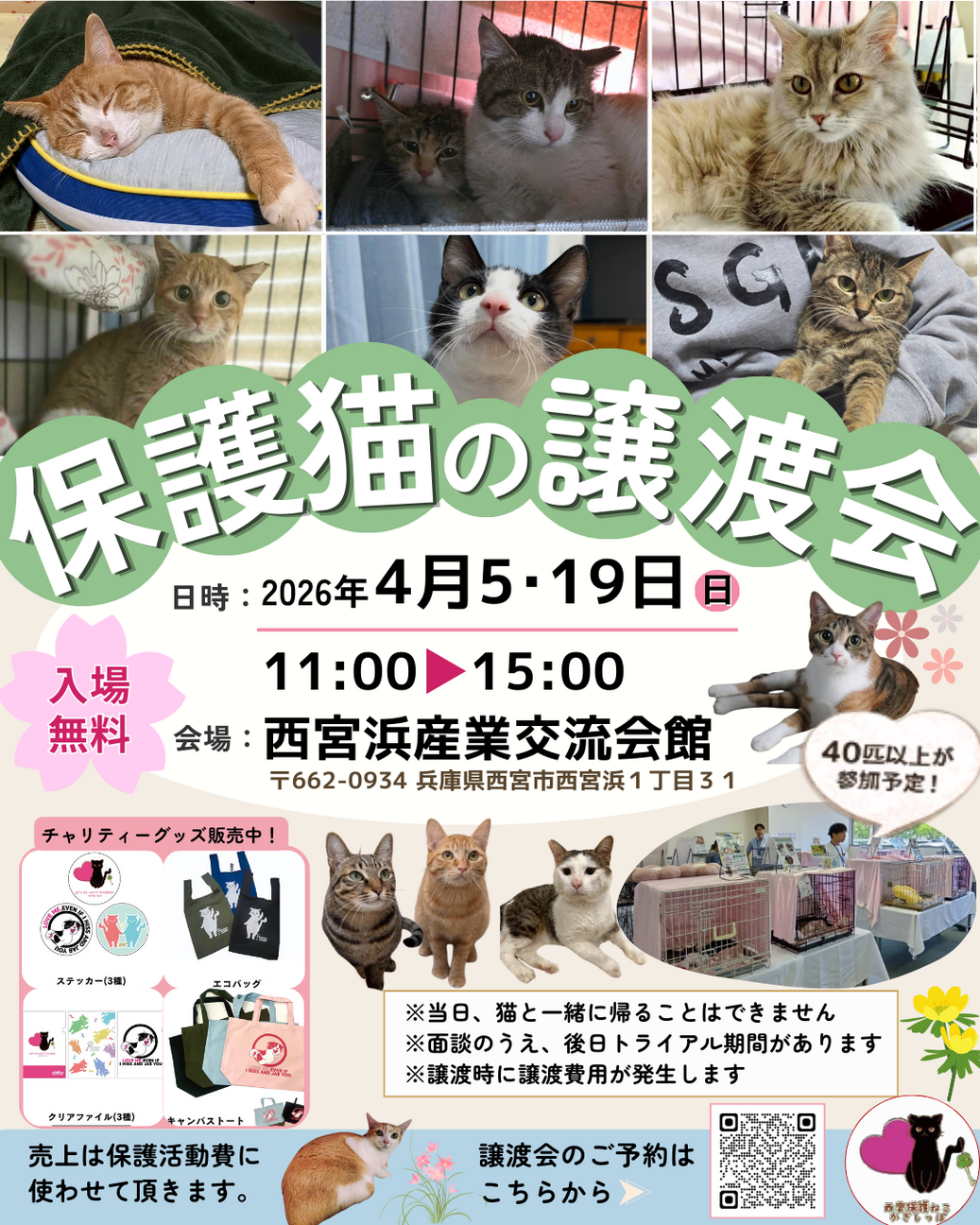 西宮保護ねこ かぎしっぽ主催の譲渡会のお知らせです。