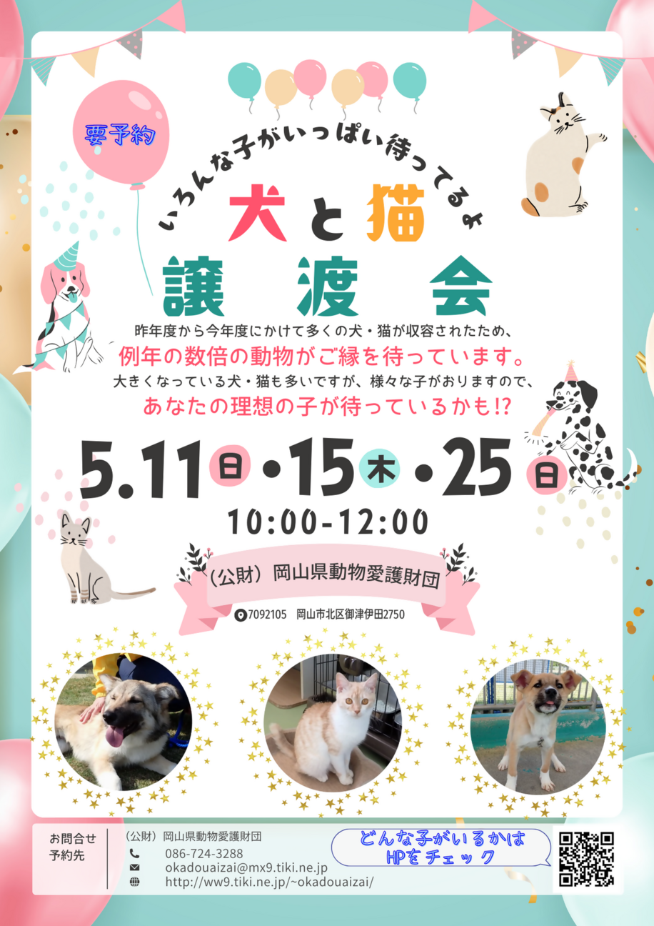 | 場所 | 岡山県岡山市北区御津伊田2750岡山県動物愛護センター |