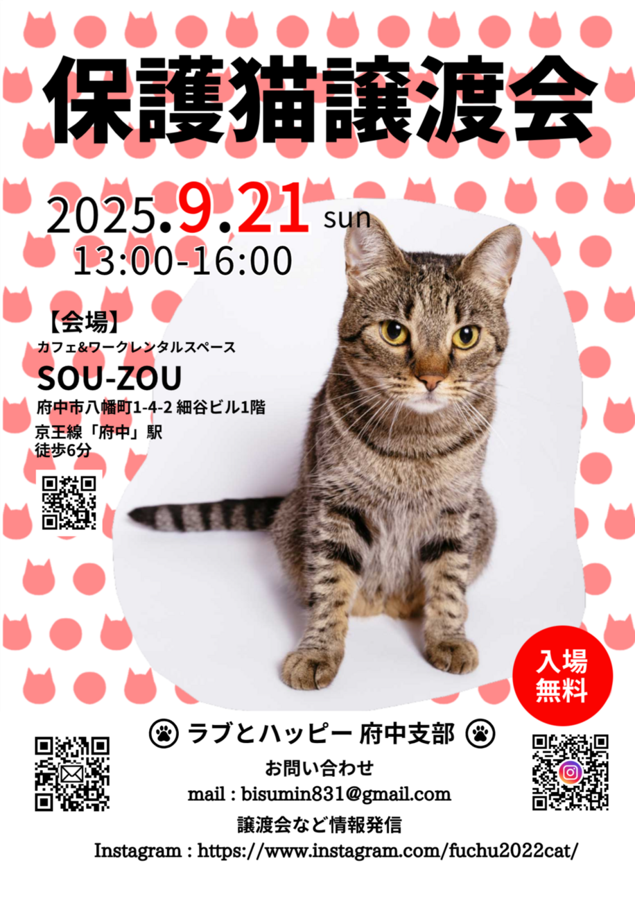 ◆譲渡会の開催や保護猫さんの情報を発信しています