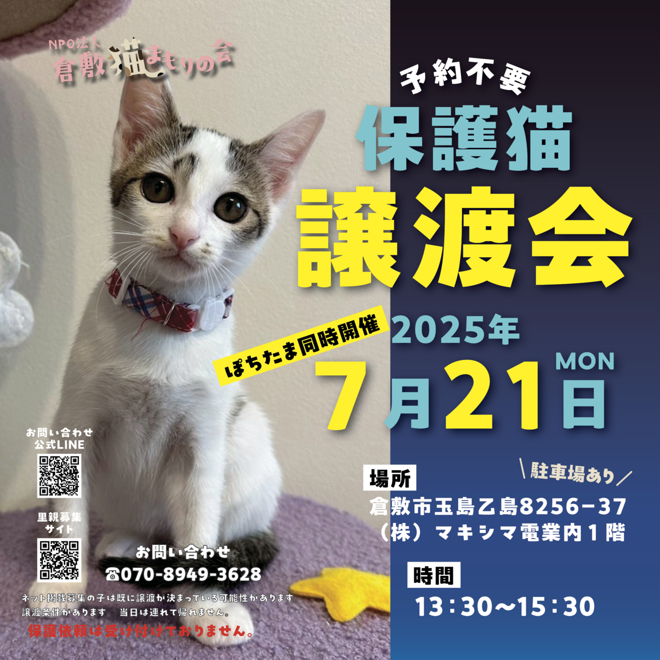 ネット掲載募集の子は譲渡が決まっている可能性があります。