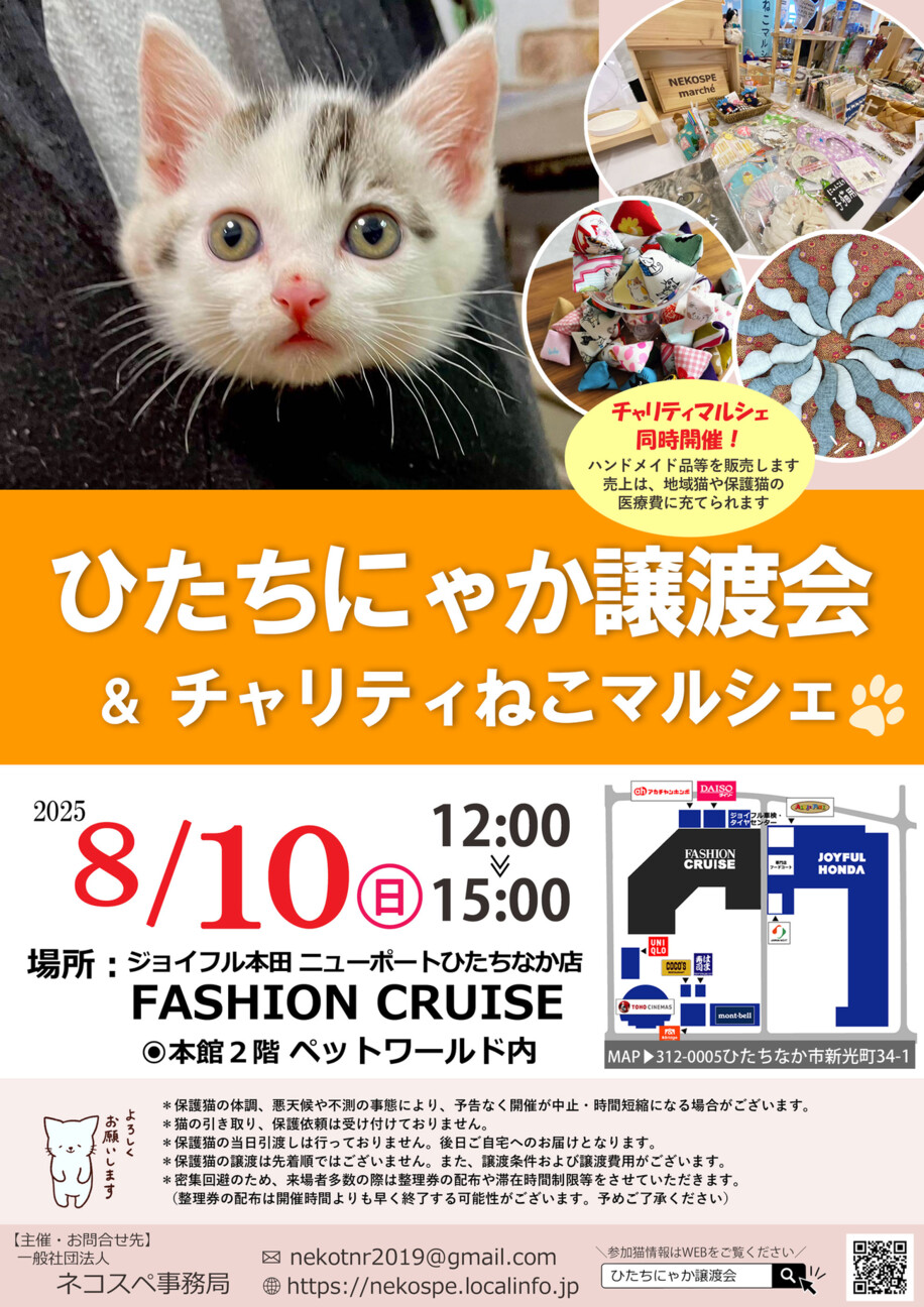 ジョイフル本田ニューポートひたちなか店での保護猫譲渡会です。