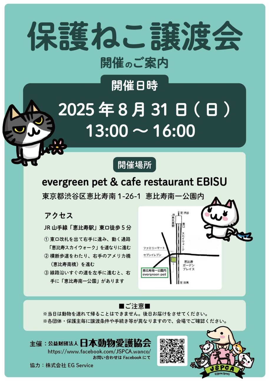 8月31日動物愛護協会さん主催の保護猫譲渡会が開催されます。