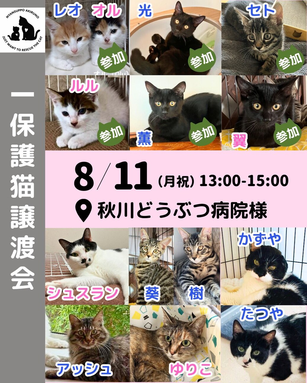 8月10日(日)譲渡会inカインズ八王子長房店様(東京都八王子市)一般社団法人はちねこ様@hogonekoparkhachinekocafe主催の譲渡会に...
