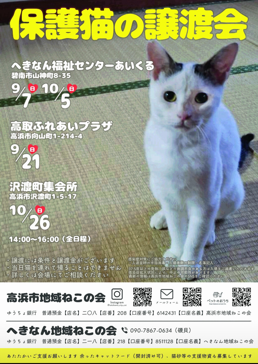 高浜市にて保護猫の譲渡会です!