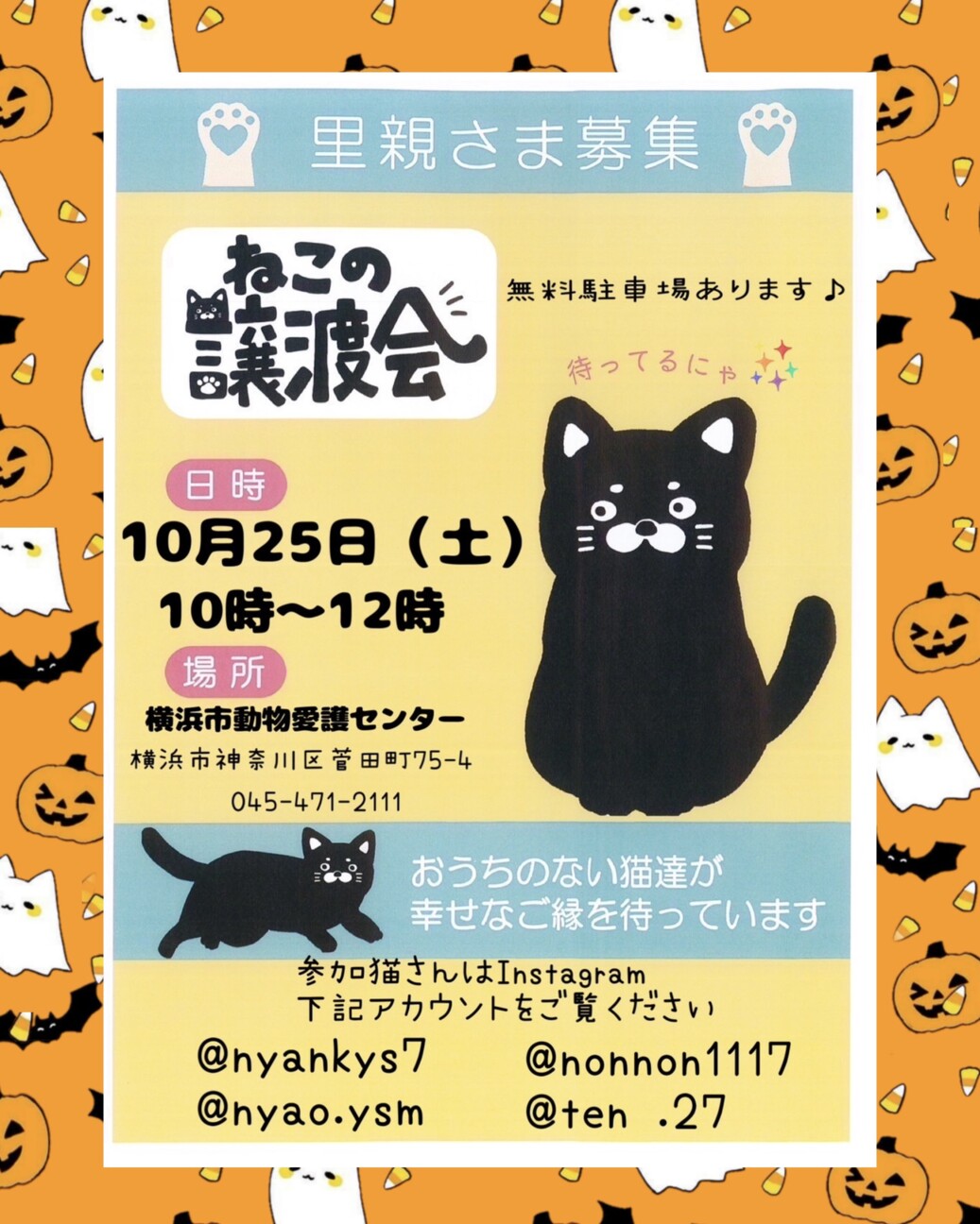個人ボランティア数人で開催しています仔猫から成猫まで参加予定(当日の体調などで変化あり)予約不要無料駐車場多数あり当日連れて帰る事はできません譲渡には条件...