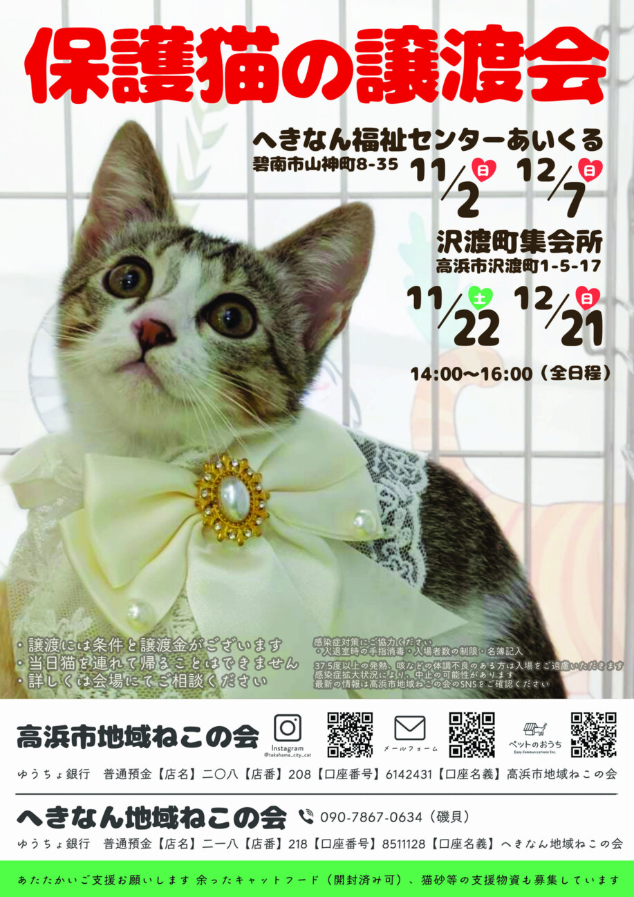 碧南にて保護猫の譲渡会です!