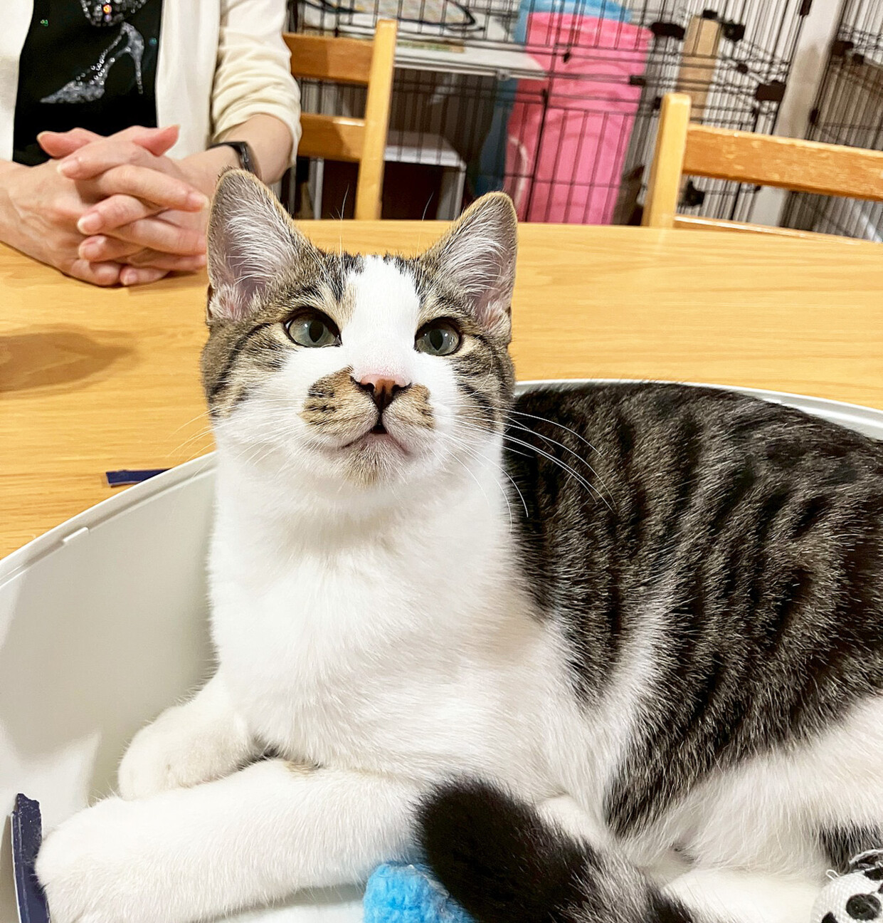 当シェルター(マンション室内)で、ケージ越しではなく実際に触れあったりオモチャで遊んだりしていただける譲渡会です。(毎週日曜開催)今回の参加猫は生後6か月...