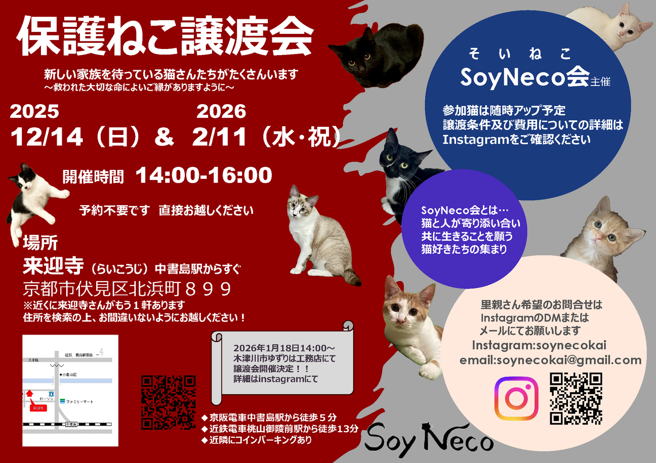 *譲渡会参加の猫さんは、譲渡会2週間前を目処に