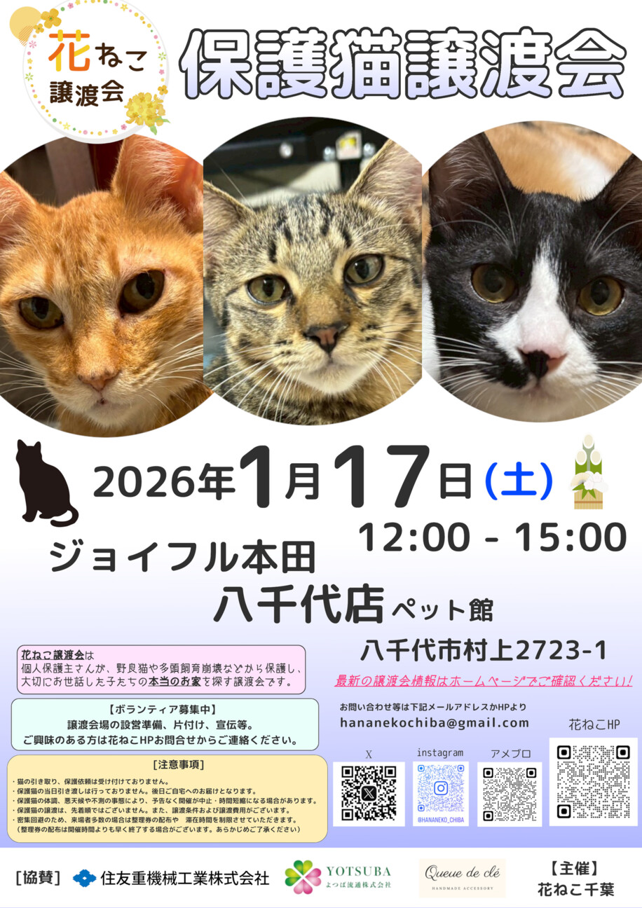 花ねこ譲渡会は、個人保護主さんが保護して大切にお世話した猫の「本当のお家」を探す譲渡会です。是非一度遊びに来てください。ご予約は不要です。