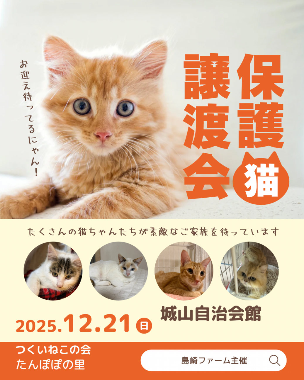 私たち「たんぽぽの里」は神奈川県相模原市を拠点とし、保護猫活動をしているボランティア団体です。午後12:00~午後3:00までホームセンター綿半ホームエイ...