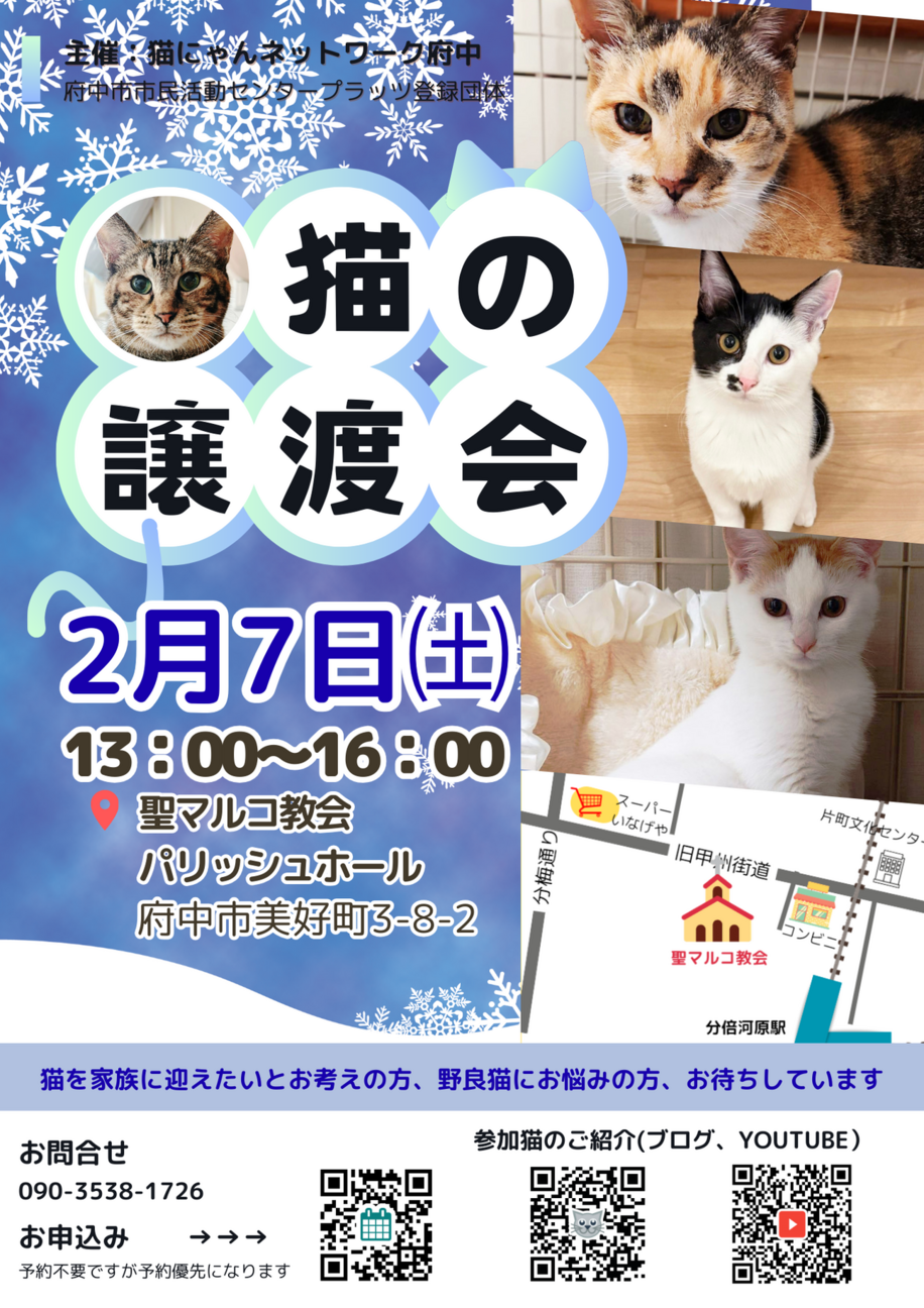 猫にゃんネットワーク府中 主催の【保護猫の譲渡会】を開催します