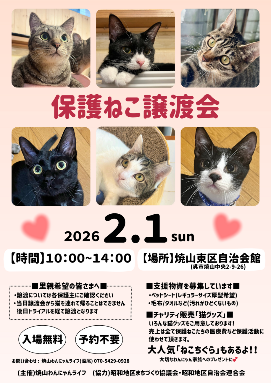 今年最後の焼山開催譲渡会です!抱っこ大好きな甘えん坊さんな猫たちが待ってます。是非お越しください。
