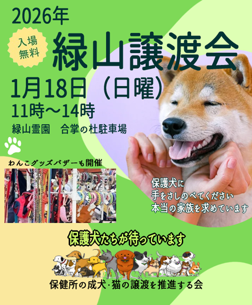 1月18日「日曜日」緑山譲渡会を開催致します。