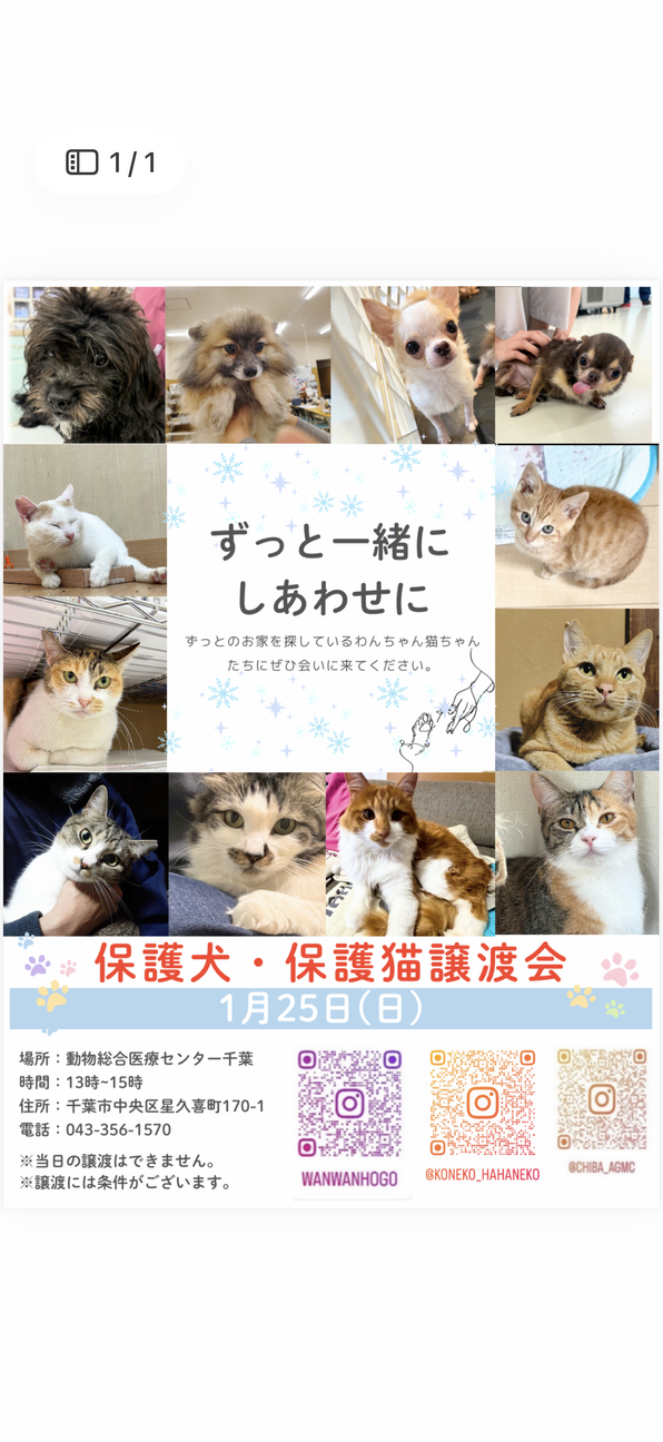 たくさんのかわいいワンちゃんと猫ちゃんの譲渡会です。ぜひ会いに来てくださいねお待ちしております