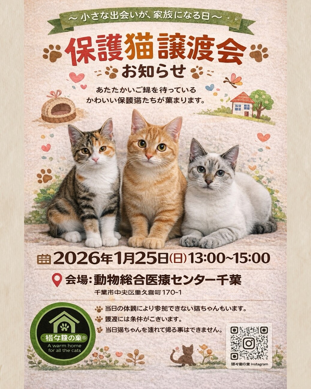 大人猫から子猫までかわいい子達がお会い出来るのを待っています。ぜひ会いに来てくださいね。お待ちしております