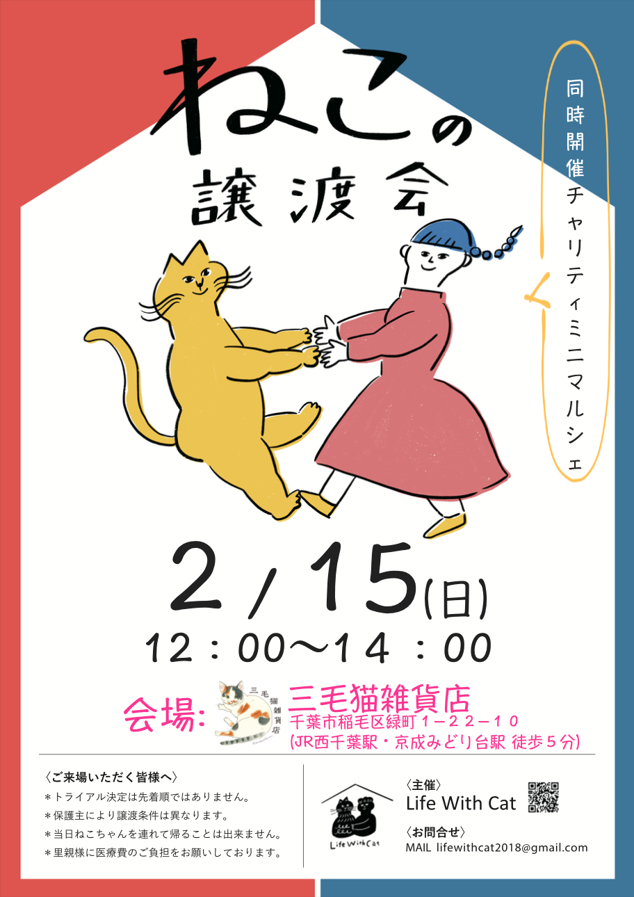 第203回LifeWithCat『ねこの譲渡会』4月26日(日曜日)12:00~14:00<会場>三毛猫雑貨店千葉県千葉市稲毛区緑町1-22-10*JR西...