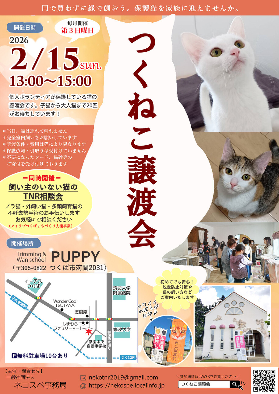 つくねこ譲渡会は個人ボランティアが保護している猫たちの譲渡会です。