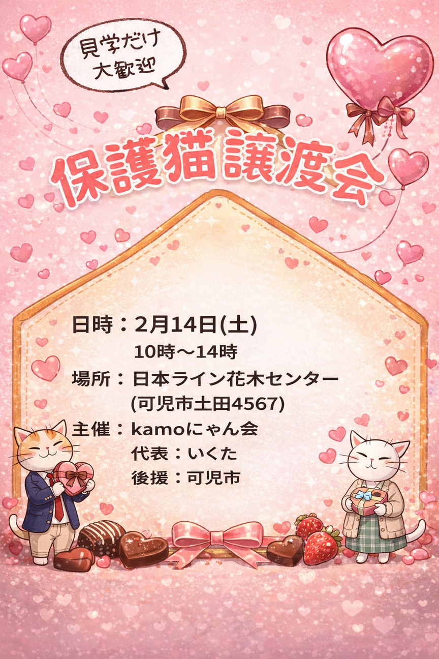 こんにちは!Kamoにゃん会です⭐︎次回3月の譲渡会開催のお知らせです。◼️◼️◼️◼️◼️◼️◼️◼️◼️◼️◼️◼️「保護猫譲渡会in花木センター」・...