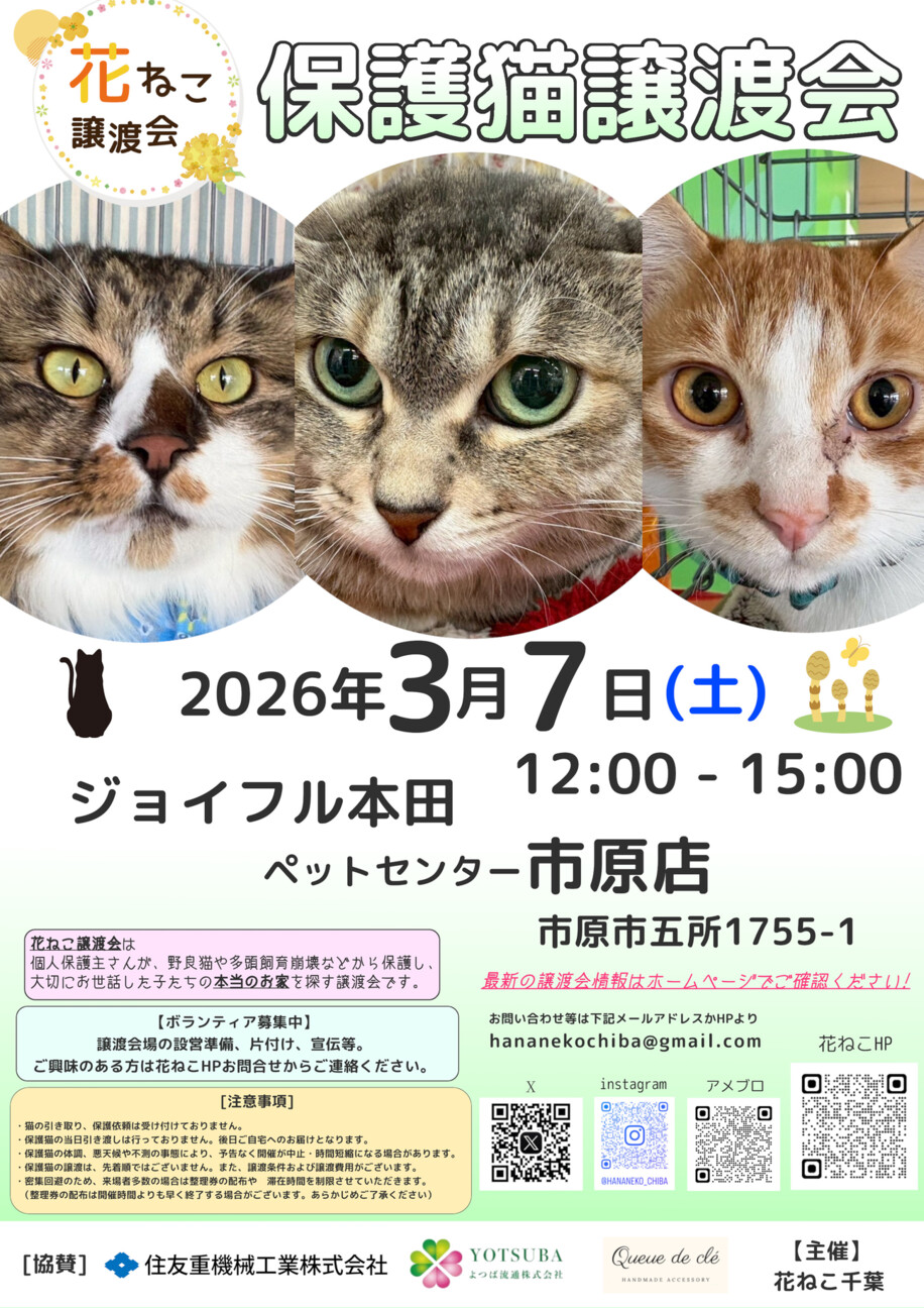 花ねこ譲渡会は、個人保護主さんが保護して大切にお世話した猫の「本当のお家」を探す譲渡会です。是非一度遊びに来てください。ご予約は不要です。
