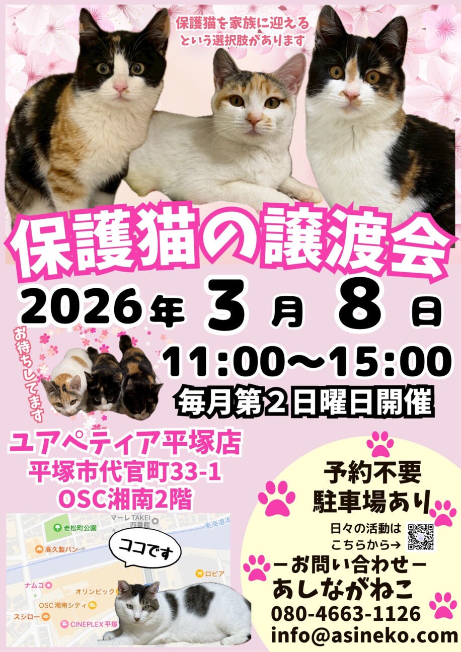 ※当日は猫を連れて帰る事はできません。