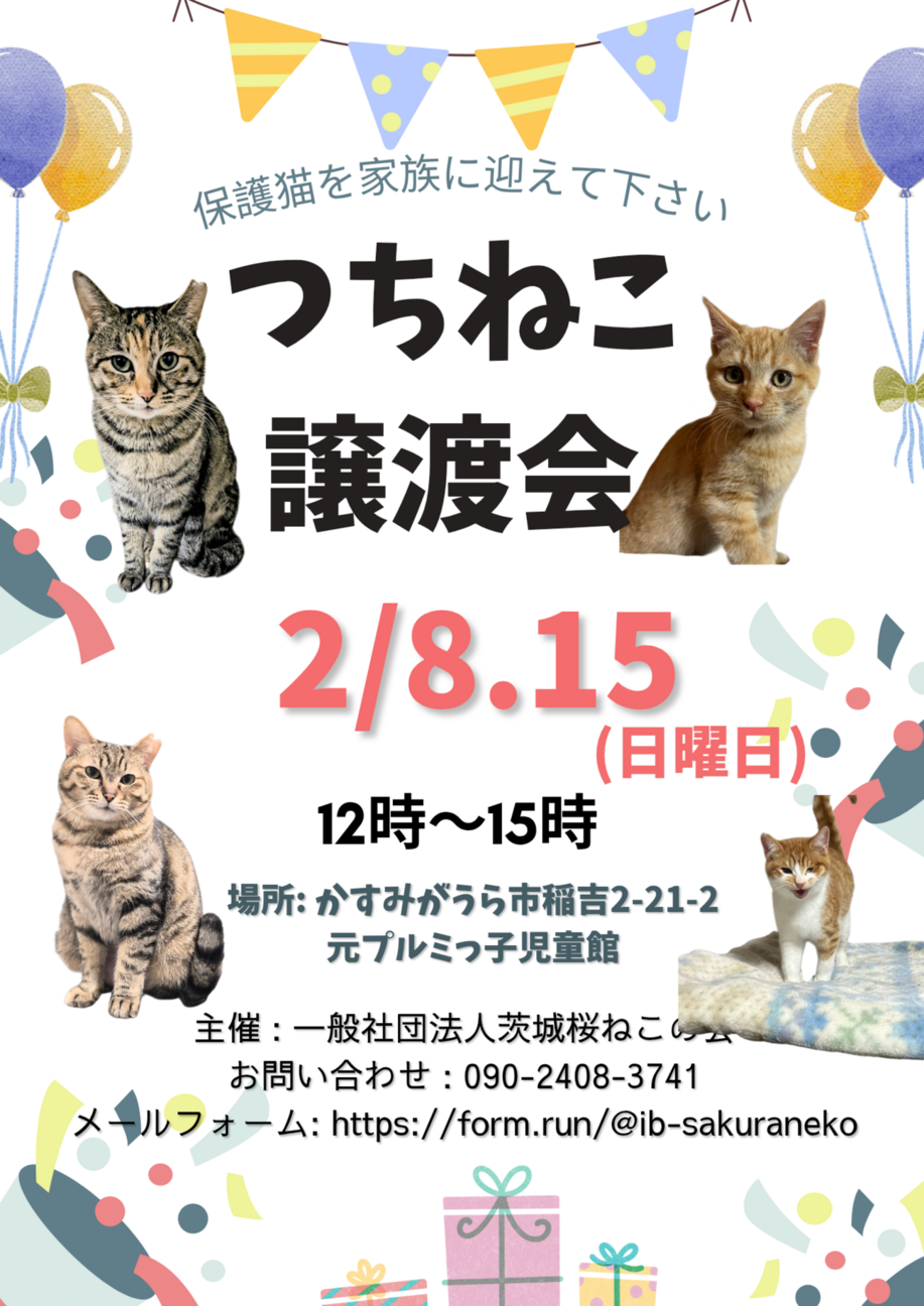 * 先着順では有りません。その猫にとって最適と思われる方を優先しており、譲渡会後に検討して近日中に結果連絡を差し上げてます。
