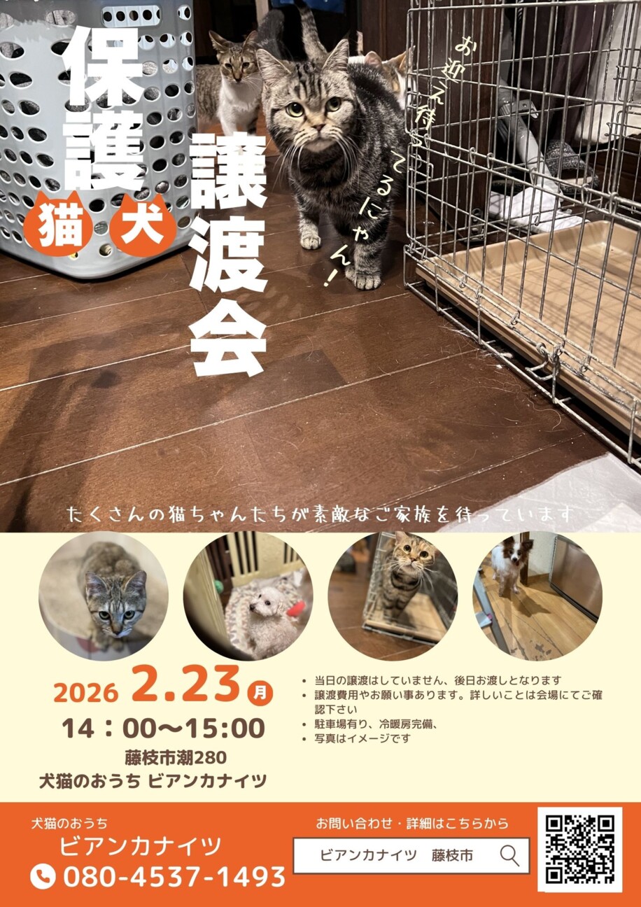 ※注意※当日、猫や犬を連れて帰ることはできません