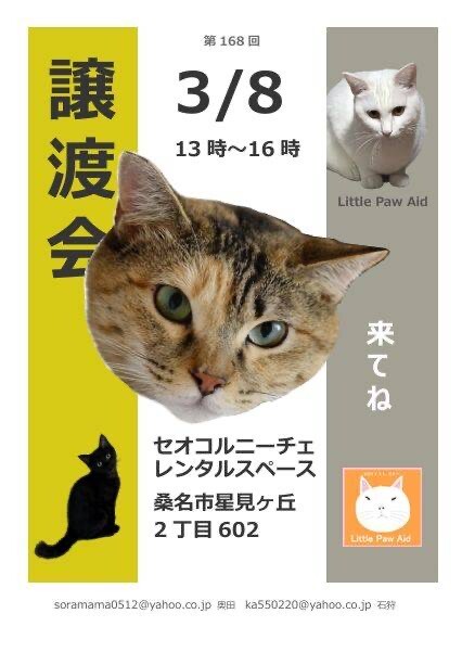 三重県桑名市3月8日(日)リトルパウエイド譲渡会