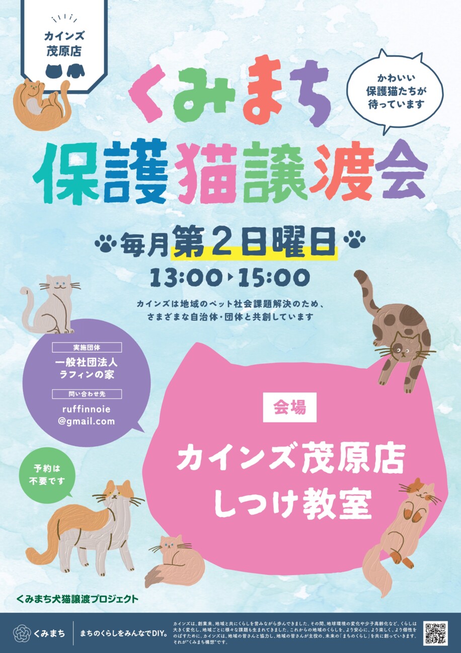 【毎月第2日曜日13時~15時】カインズ茂原店様での「くみまち保護猫譲渡会」第10回目の開催となります!予約不要です。※動物取扱許可申請の関係上、持ち込み...