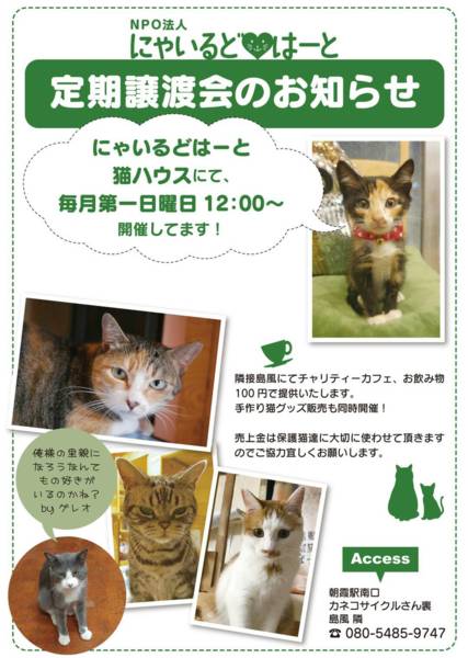 わんわん吉見シェルターにて譲渡会を開催します。YouTubeでおなじみのにゃいるどっ子達に会いに来ませんか。今回は歌やトークあり、ハンドメイドショップも出...