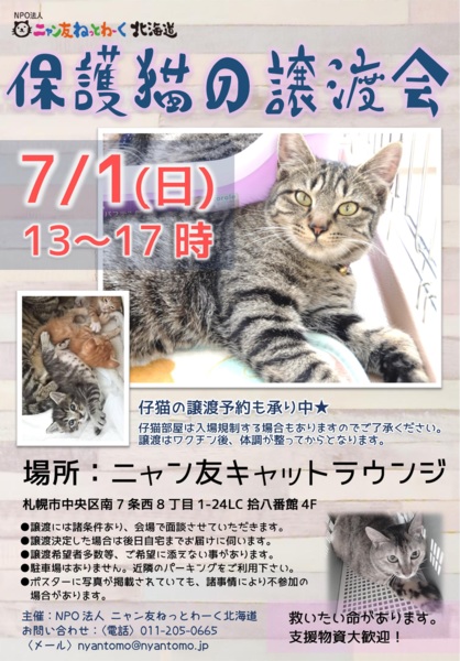 【札幌】保護猫の譲渡会