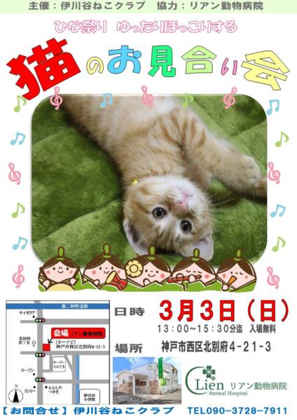 無料駐車場完備主催伊川谷ねこクラブあられのブログhttps://ameblo.jp/mimoamako411/entrylist.html問い合わせmim...