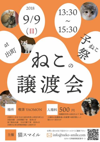京都YAEMONさんで譲渡会を開催させてもらいます♪