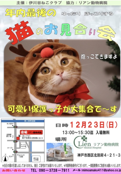 無料駐車場完備主催伊川谷ねこクラブあられのブログhttps://ameblo.jp/mimoamako411/entrylist.html問い合わせmim...