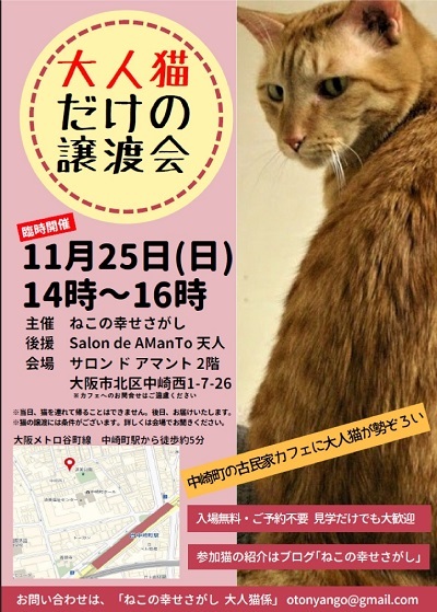 「大人猫だけの譲渡会」を開きます。