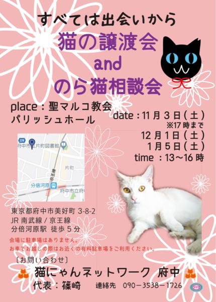 #譲渡会 #里親募集 #猫 #東京都府中市 #仔猫 #ねこ #分倍河原駅 #聖マルコ教会 #保護猫 #愛猫 nnn府中
