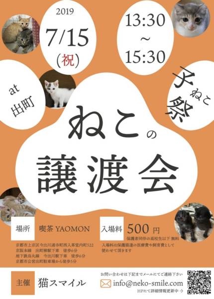 京都YAEMONさんで猫さんの譲渡会を開催させてもらいます♪