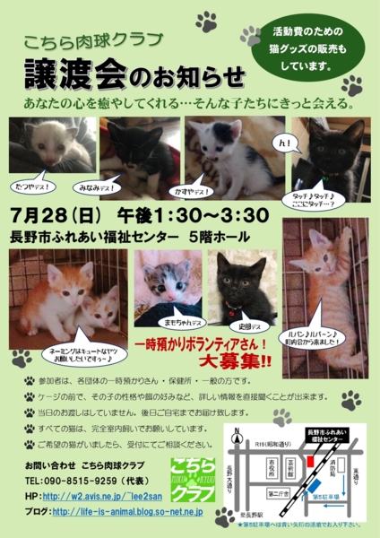 第38回猫の譲渡会2019年9月29日(日)1時30分から3時30分場所・・・長野市ふれあい福祉センター・4F会議室沢山の猫ちゃんが新しい家族を探していま...