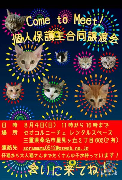 三重県桑名市8月4日(日)個人保護主合同譲渡会