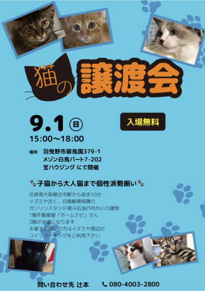 仔猫から大人猫まで、たくさん参加します。 家族になってくださいませんか? お待ちしております!