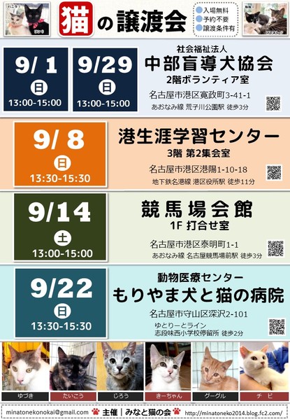 完全室内飼い・誓約書・治療費負担等の諸条件があります。