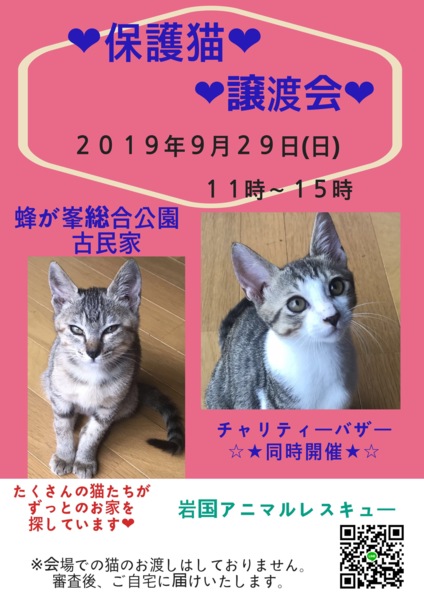 5月も譲渡会開催します!たくさんの保護猫ちゃんが参加予定。里親様とのご縁を待っています。同時に主にハンドメイド作品の保護活動支援チャリティバザーも開催。今...
