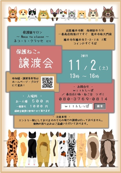藤井寺市 保護猫サロン ネコトクラッセ 様にて譲渡会を行います。