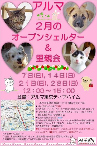 2月7日(日)、ティアハイムオープンシェルター里親会を開催します。
