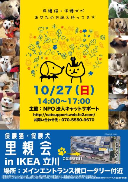 センター収容犬猫の里親会です。行き場のなくなった犬猫の里親様を探しております。①ペット可の住宅であること②完全室内飼いをしてくださること③終生飼育をしてく...